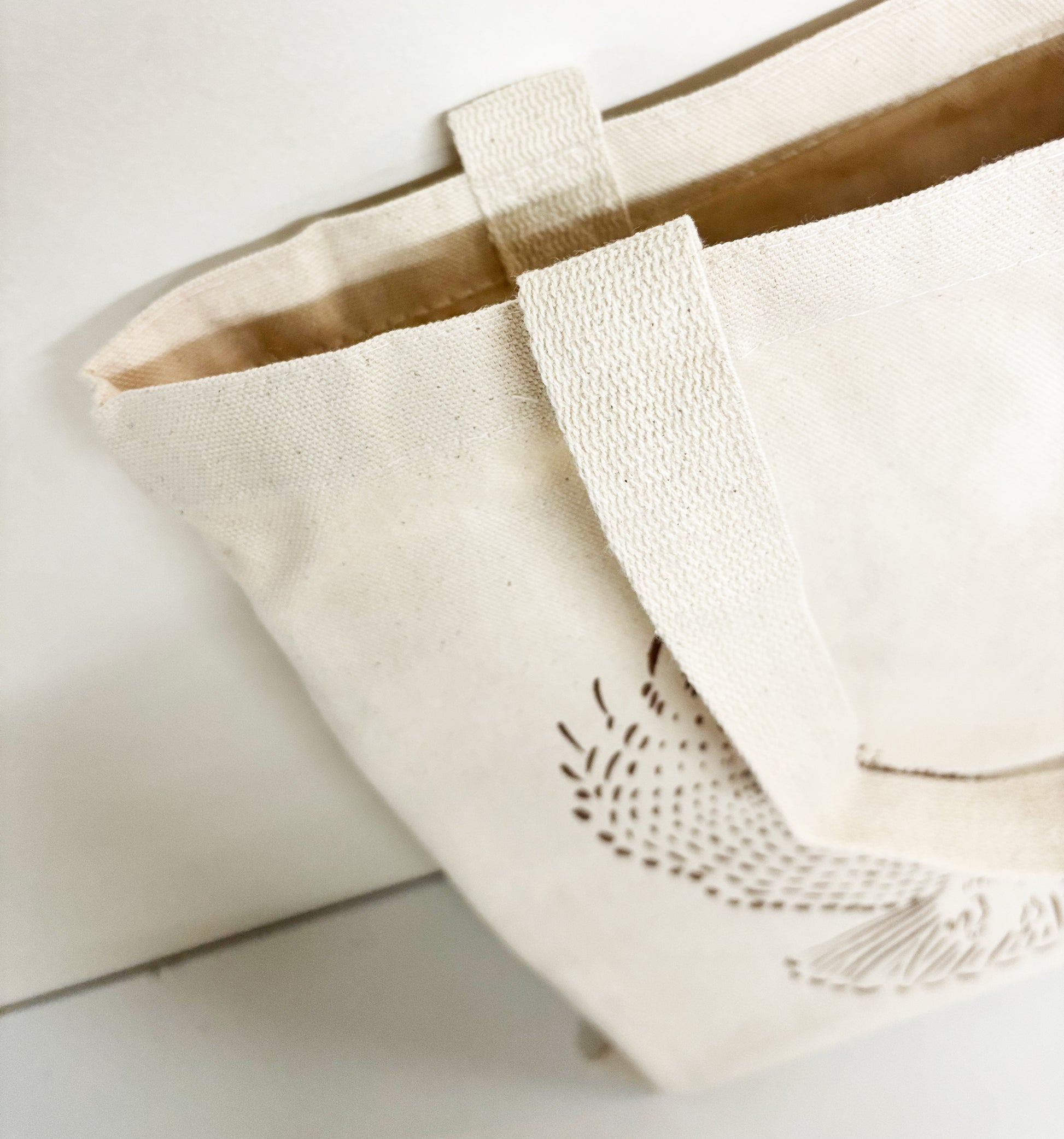 Details: - Bag is 14x16” with Webbed Cotton Handles that are 10” high and stitched for added security - 12ox 100% Natural and Sturdy Cotton Canvas - Hand Screen Printed with Eco-Friendly Ink by Paula in her Toronto studio! - Original Art has been drawn and created as a screen by Paula - print is 10” wide