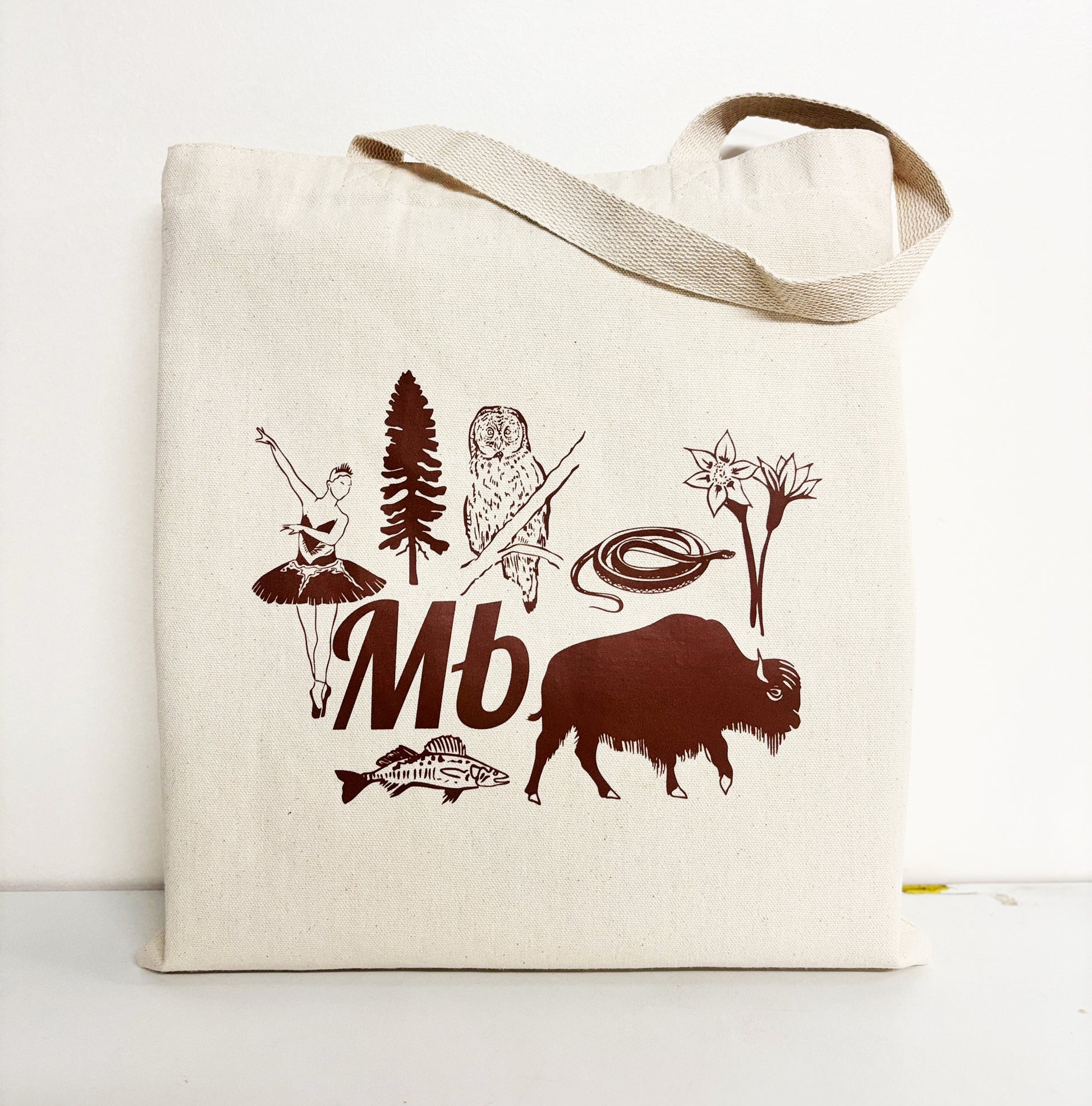 My hand printed Manitoba tote features familiar and symbols of this gorgeous and diverse province.