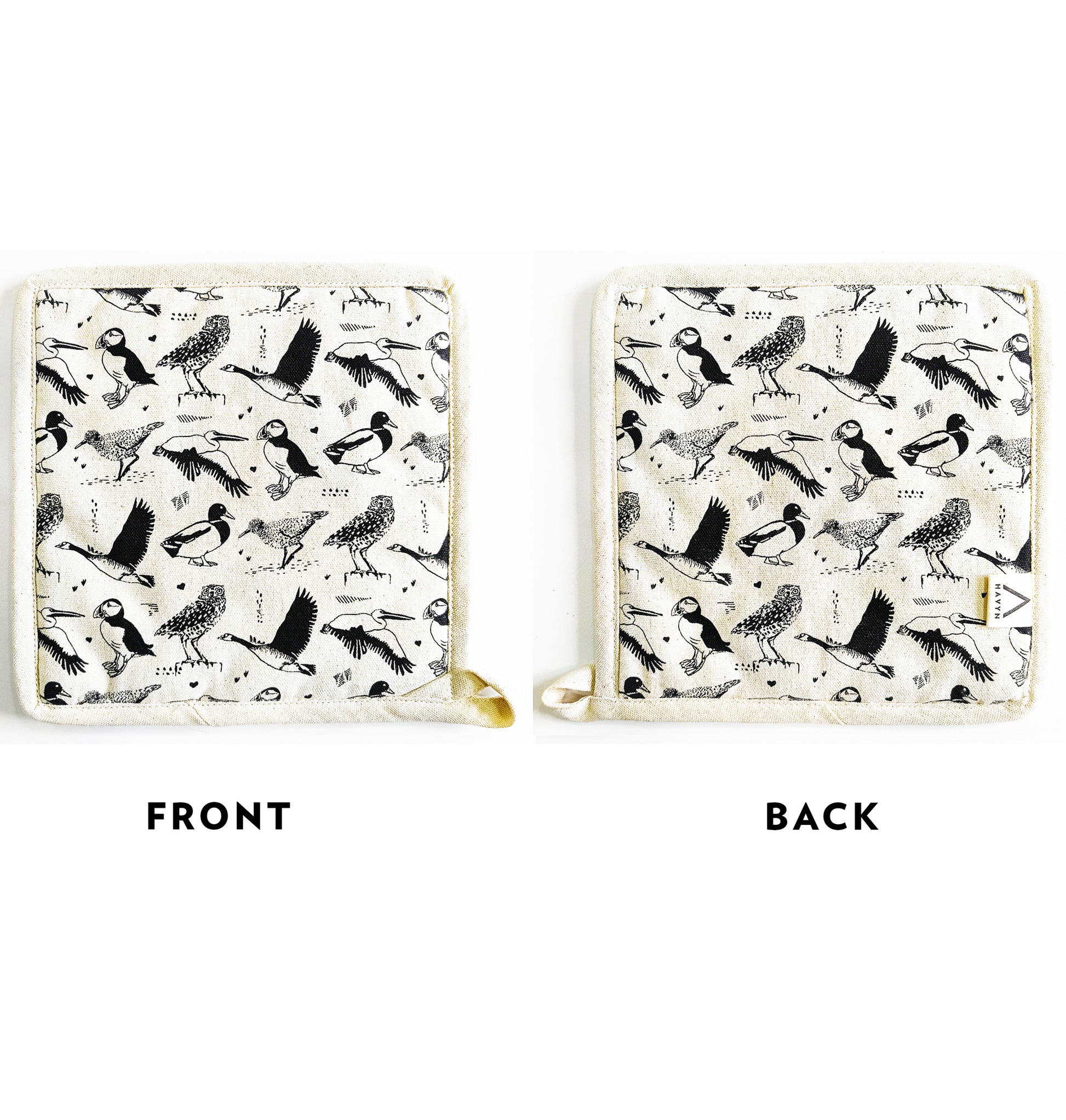 Pot Holder Set of 2 Hand Screen Printed Natural - Canada Birds