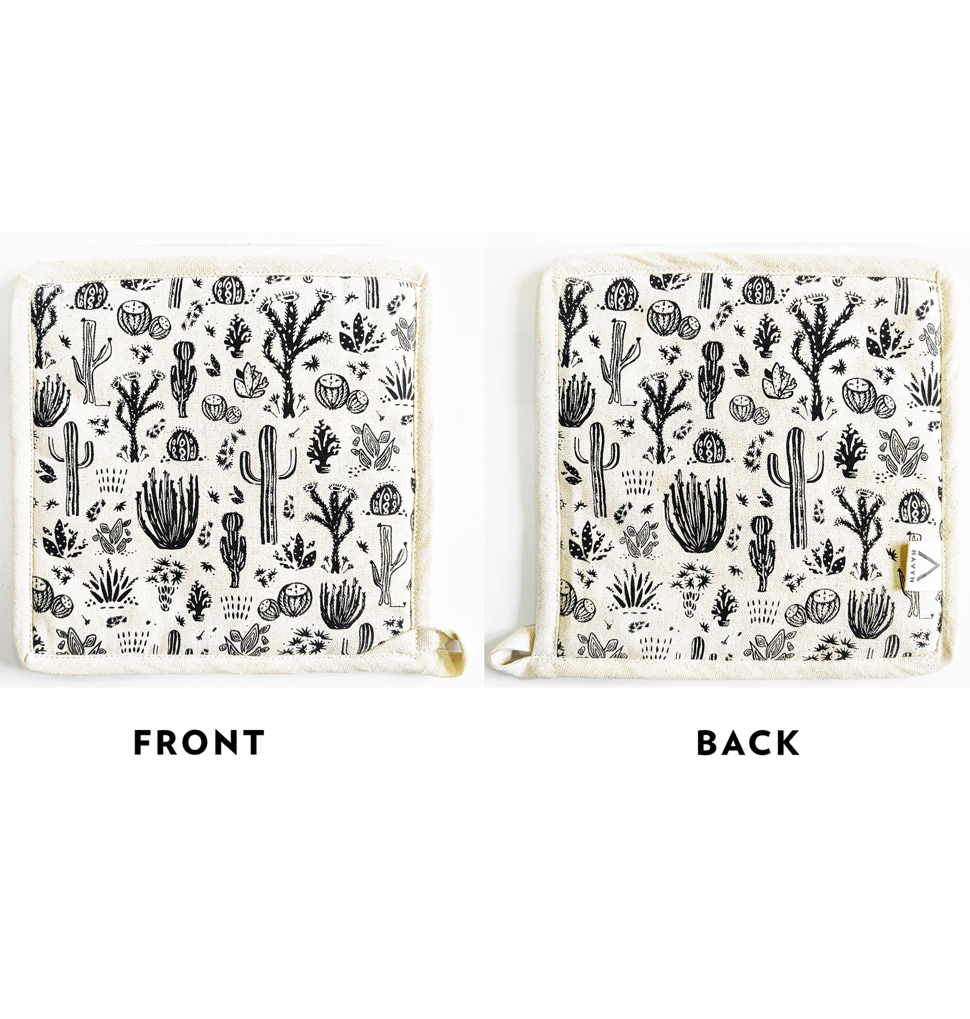 Pot Holder Set of 2 Hand Screen Printed Natural - Desert Cactus