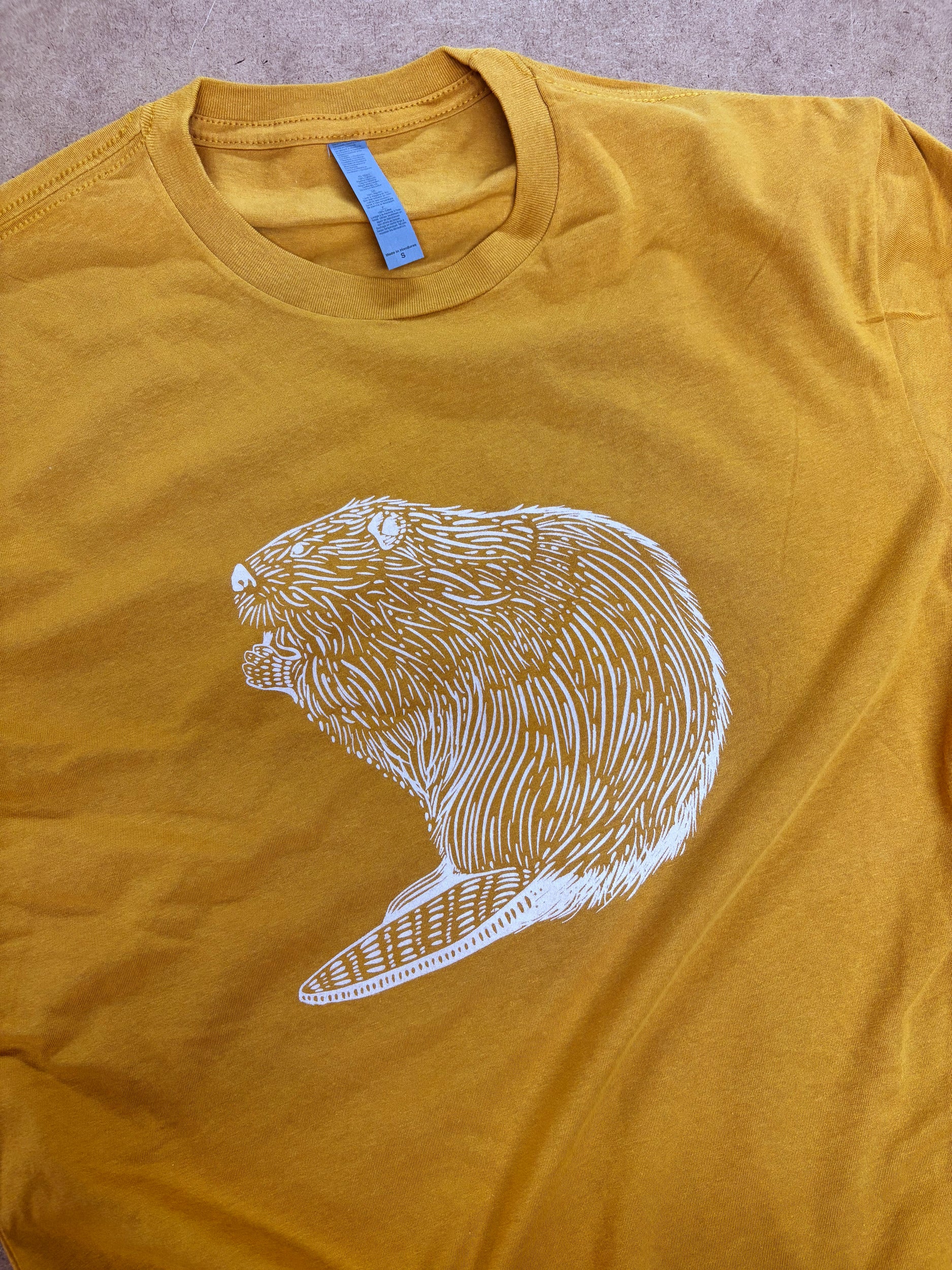 Tshirt Limited Edition Beaver Original Screen Print Mustard Yellow - Adult Unisex