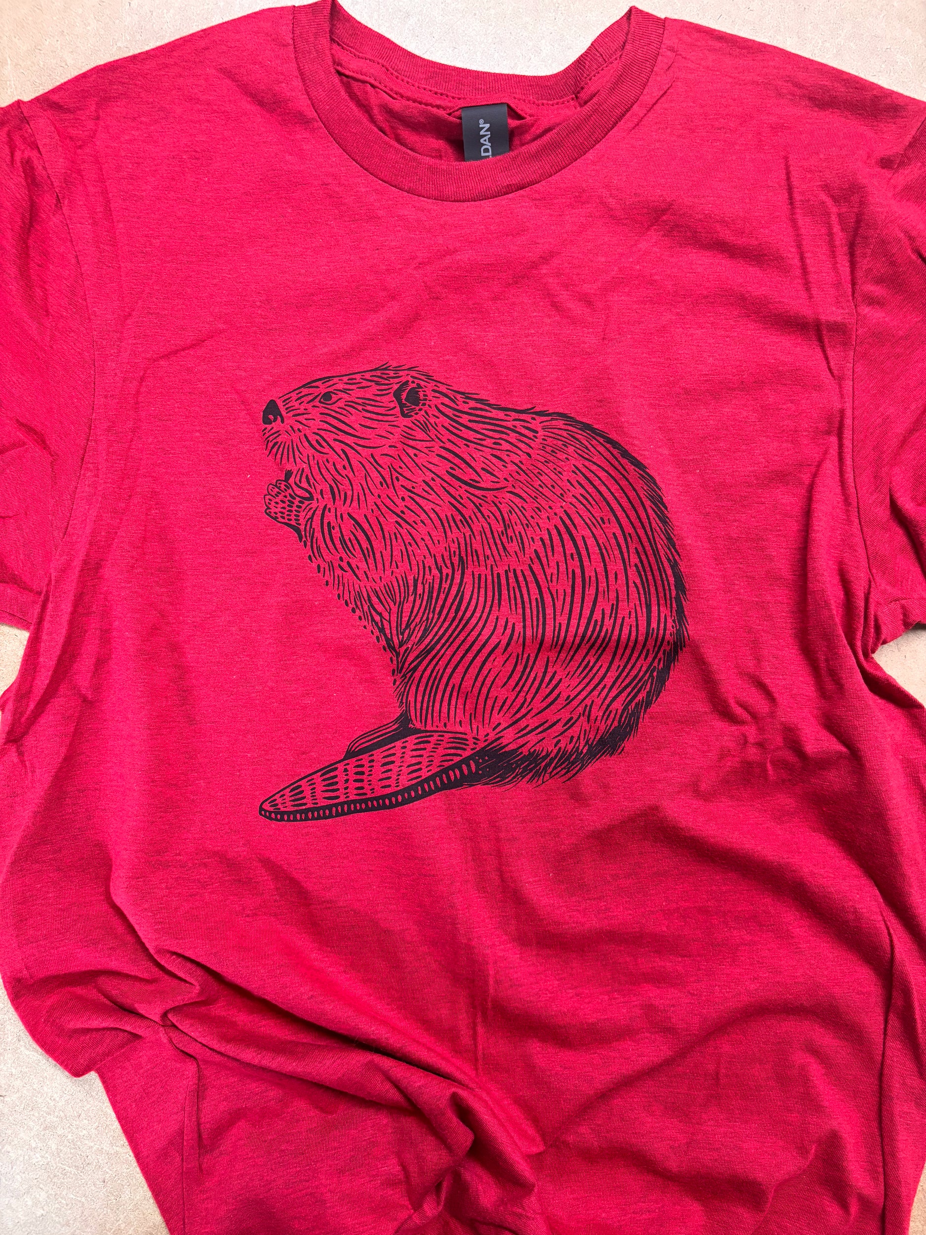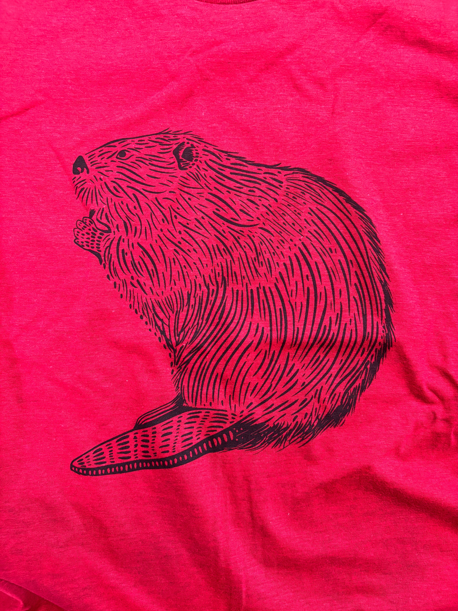 Tshirt Limited Edition Beaver Original Screen Print Vintage Red - Adult Unisex
