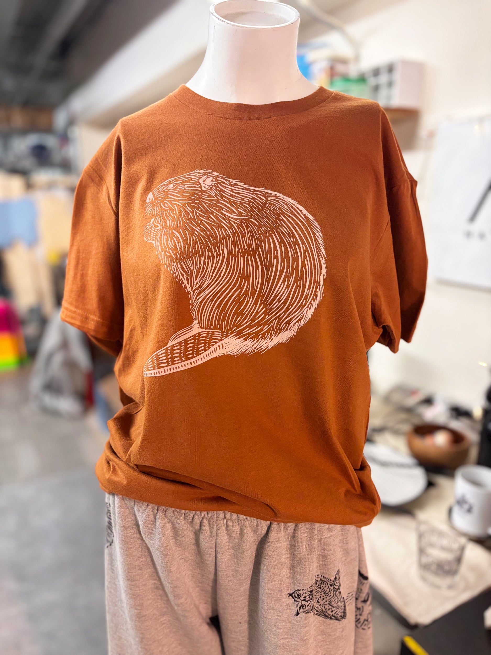 Tshirt Limited Edition Beaver Original Screen Print Rust - Adult Unisex