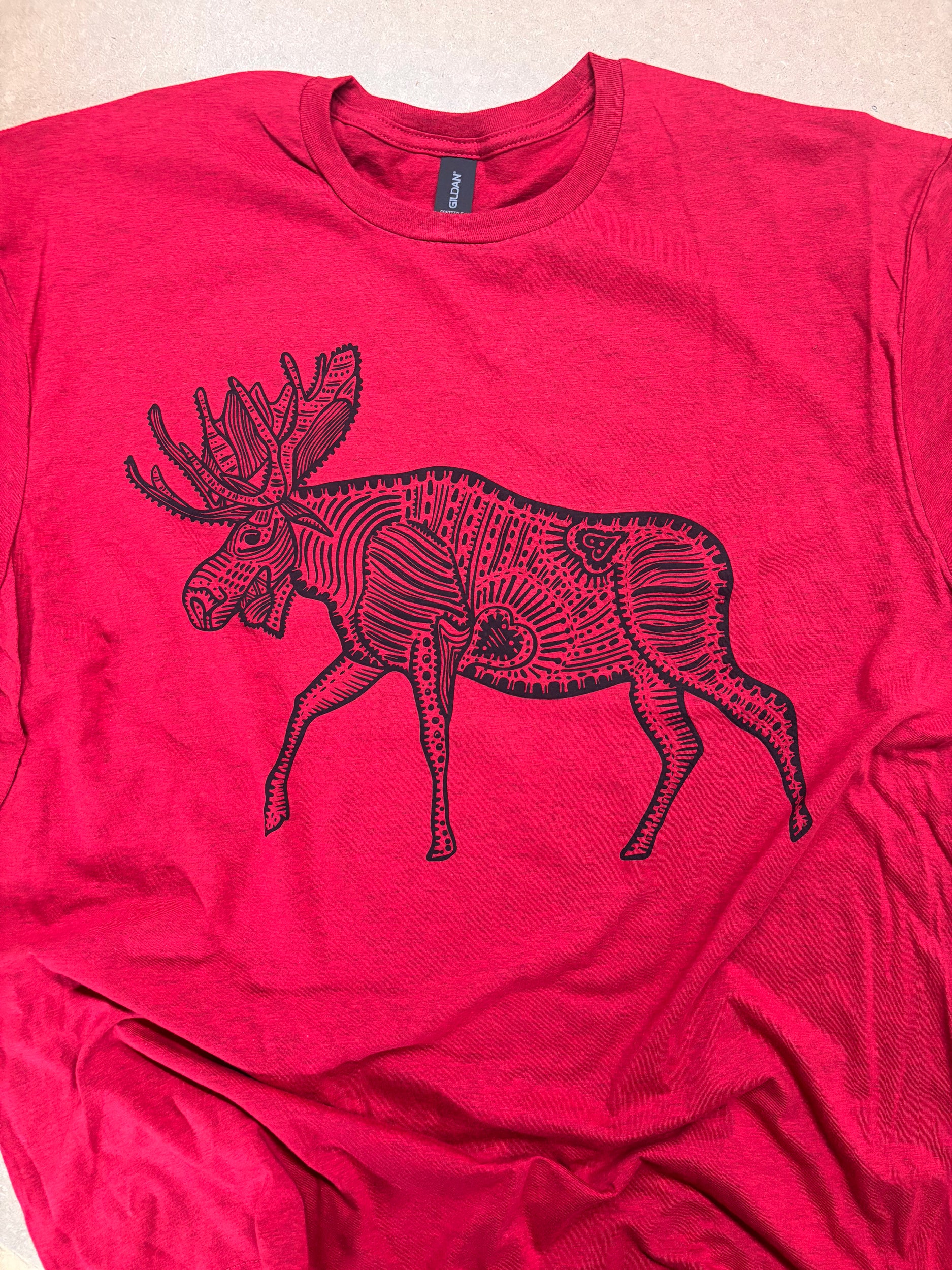 Tshirt Limited Edition Moose Original Screen Print Vintage Red - Adult Unisex
